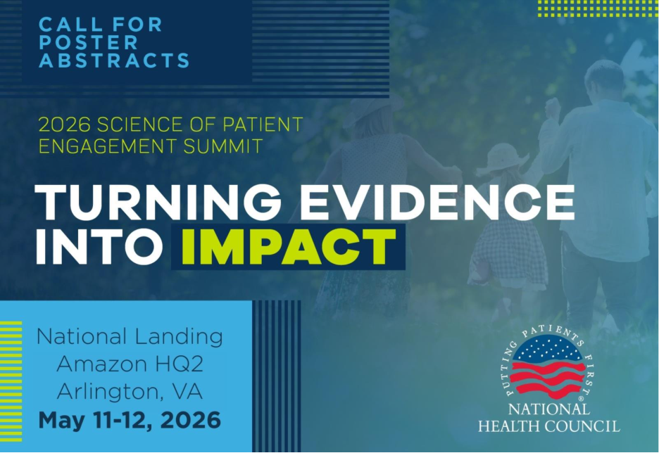 The National Health Council invites you to submit an abstract for the 2026 Science of Patient Engagement Summit Poster Reception. This event brings together organizations working at the forefront of patient engagement to discuss the most pressing issues facing patients and their unpaid family caregivers.